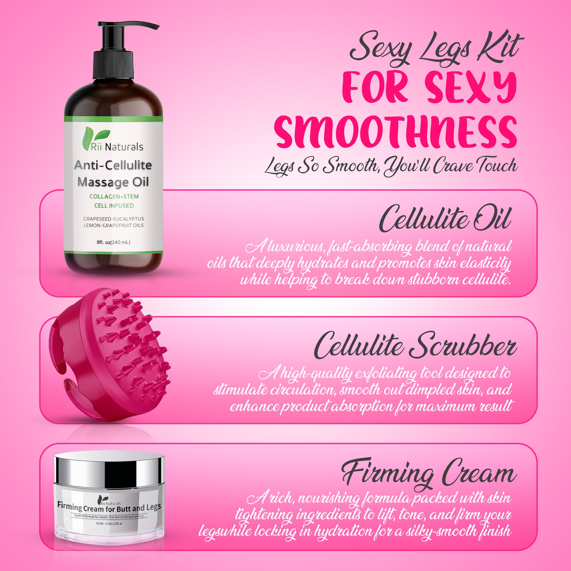 Sexy Legs Kit - Anti Cellulite Massage Oil, Firming Cream & Body Scrubber Massager 3-in-1 BUNDLE